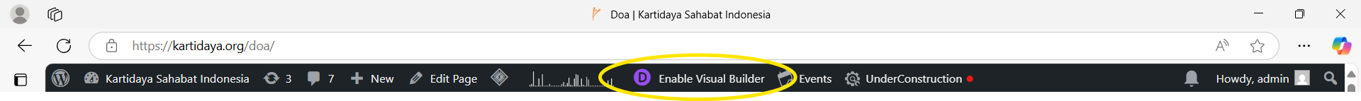 Masuk ke halaman Doa di situs web Kartidaya, lalu klik Enable Visual Builder.