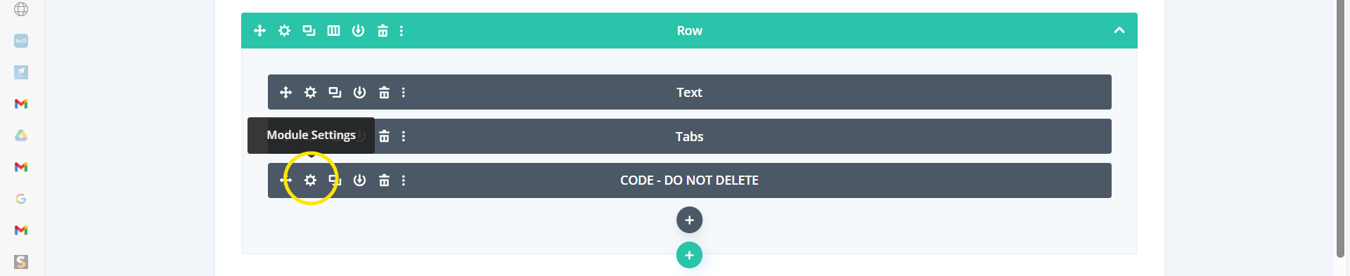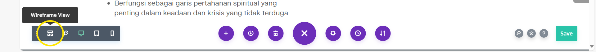 ...) di bagian bawah untuk membuka Settings Bar, lalu aktifkan Wireframe View di panel sebelah kiri. Maka semua modul yang ada pada halaman akan terlihat.Klik tombol Settings di samping modul yang diberi judul CODE - DO NOT DELETE. Maka jendela Code Settings akan terbuka.