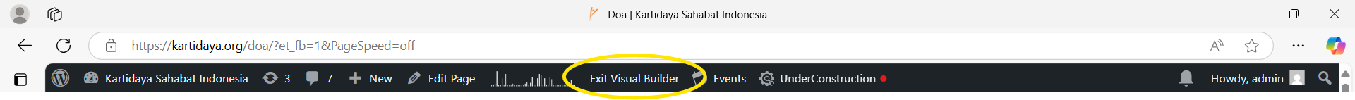 Klik Exit Visual Builder untuk keluar dari mode penyuntingan halaman, lalu cek apakah perubahan yang kita buat berhasil ditampilkan.